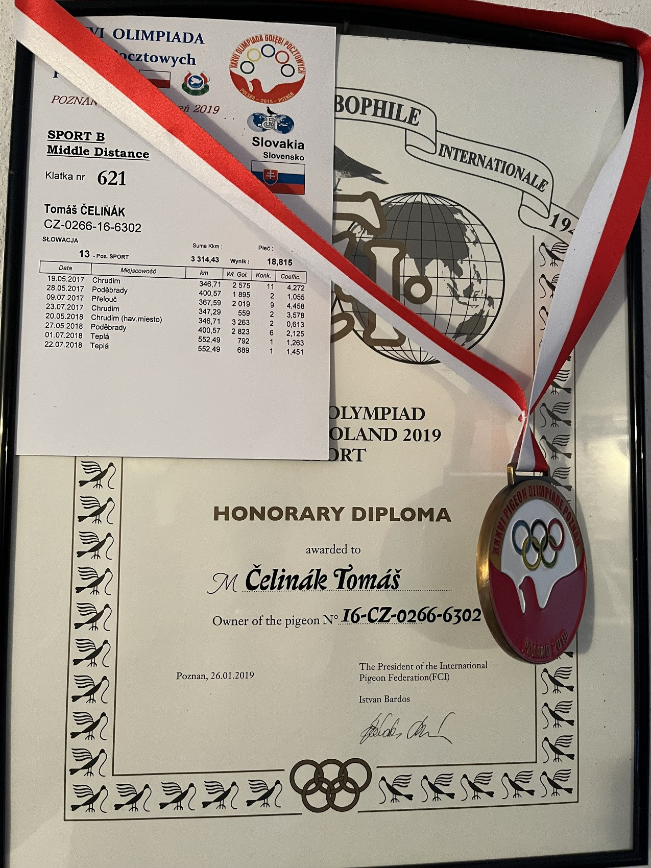 Popis: "OLYMPIONIK" 13.holub sveta Sport B Olympiáda Poznaň 2019, výborné oko a postava