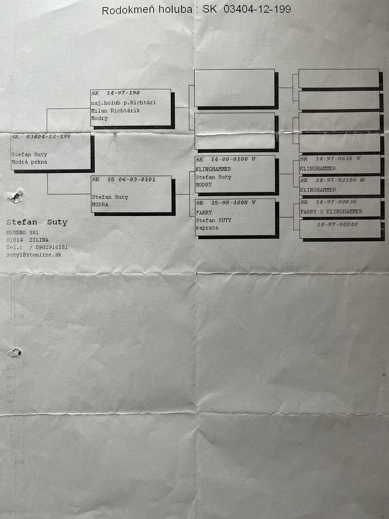Rodokmeň matky holuba