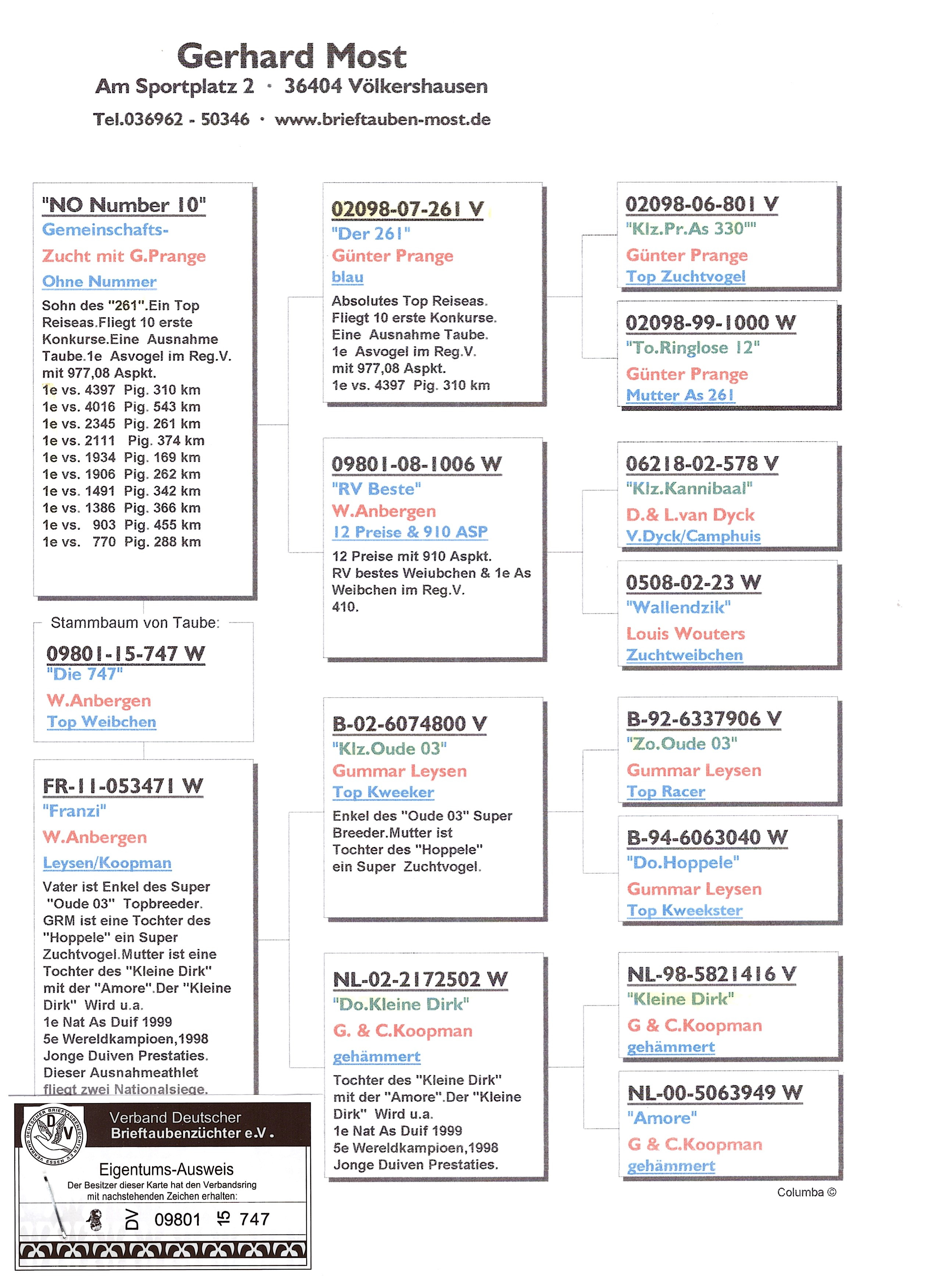 Popis: Ponukaná holubica je vnučka Super Milion 2.Eso Belgie stredné trate 2008.Matka vedie krv Olympic Martin+Olympic Leo 241 ktorého kúpil Eijerkamp