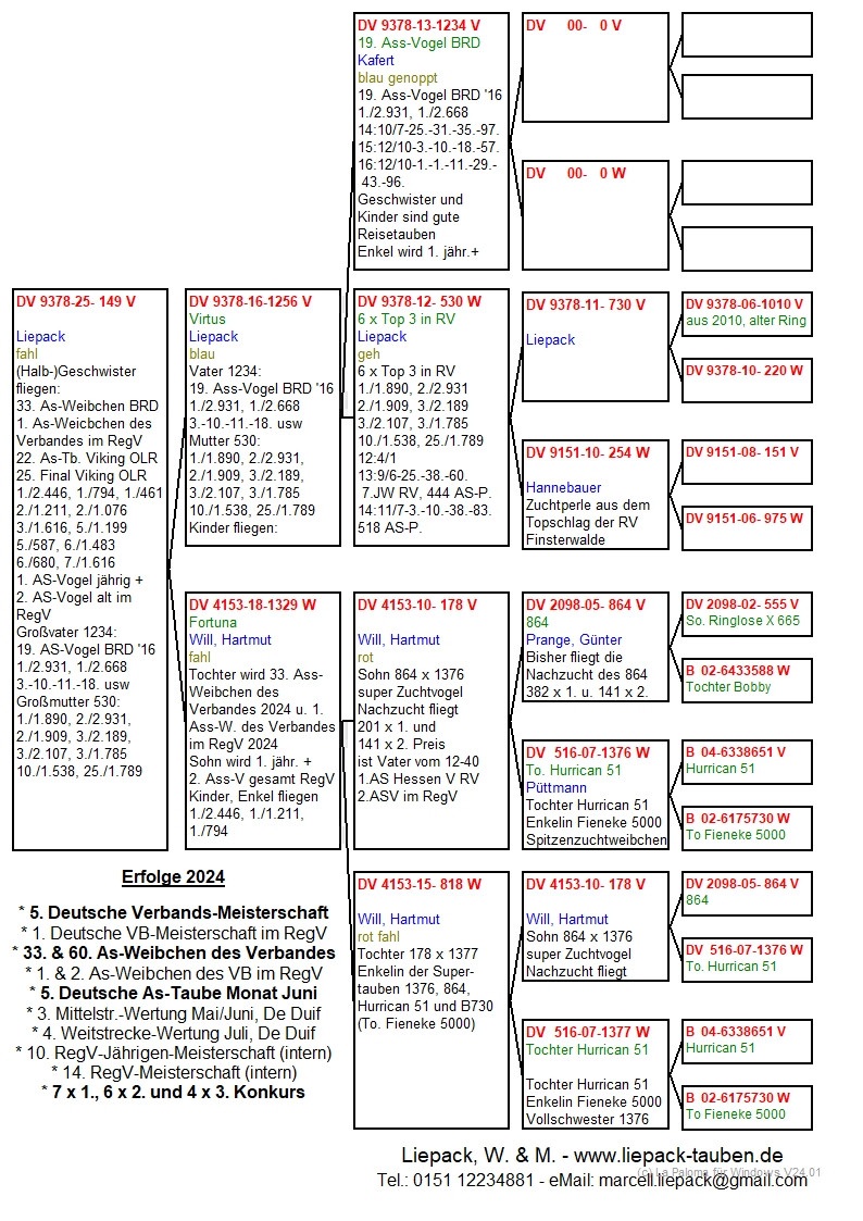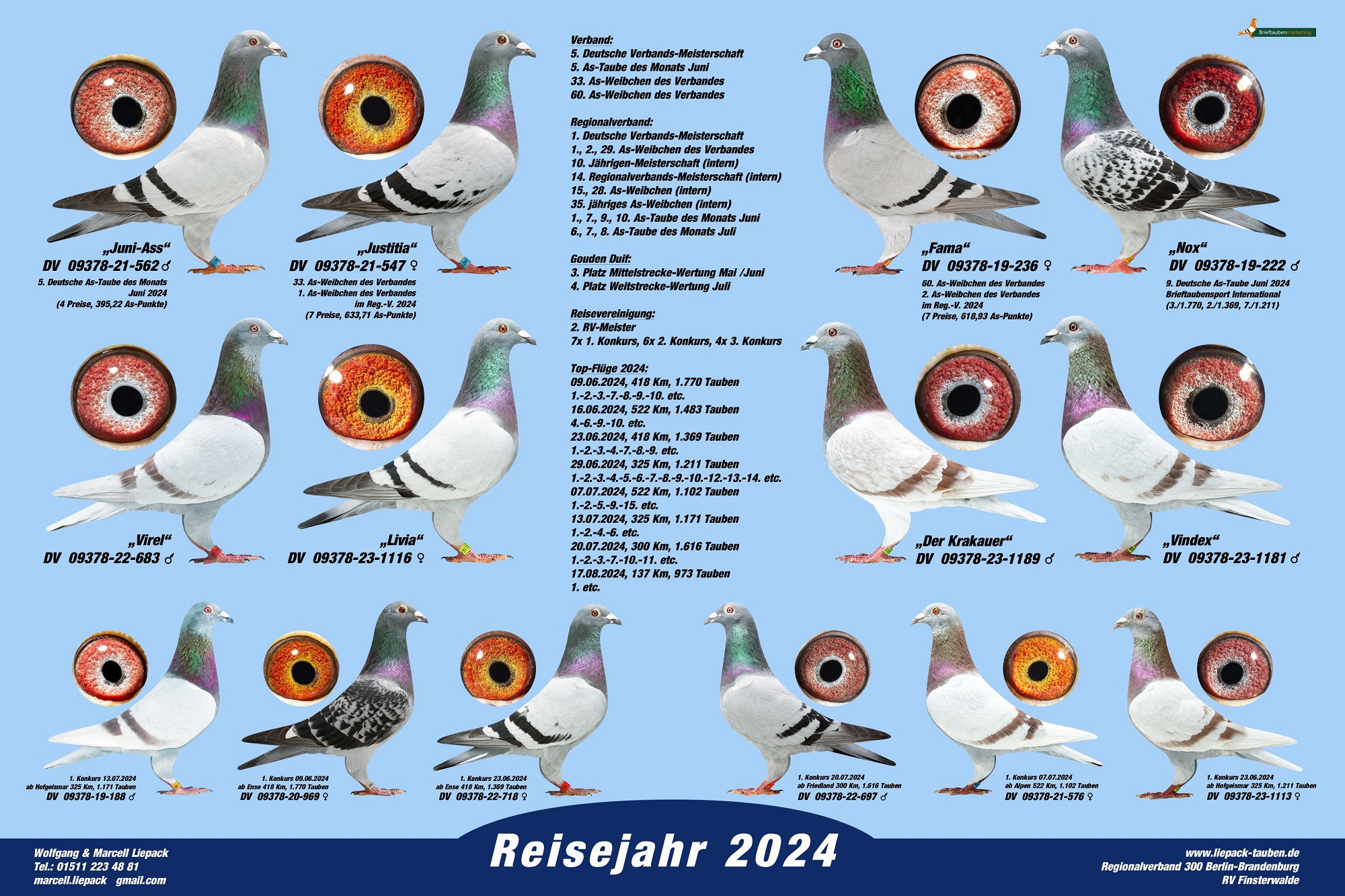 Otec a syn, Wolfgang (66 rokov) a Marcell (47 rokov), už mnoho rokov veľmi úspešne pretekajú s holubami v regióne Berlín-Brandenbursko. Lietajú zo západu a prekonávajú vzdialenosti až do približne 600 km. Ich najväčší úspech prišiel v roku 2024 s ich 5. miestom v nemeckom šampionáte (ďalšie úspechy nájdete v dodatku). Pravidelne dosahujú popredné umiestnenia v individuálnych pretekoch a rôznych šampionátoch na regionálnej a národnej úrovni.