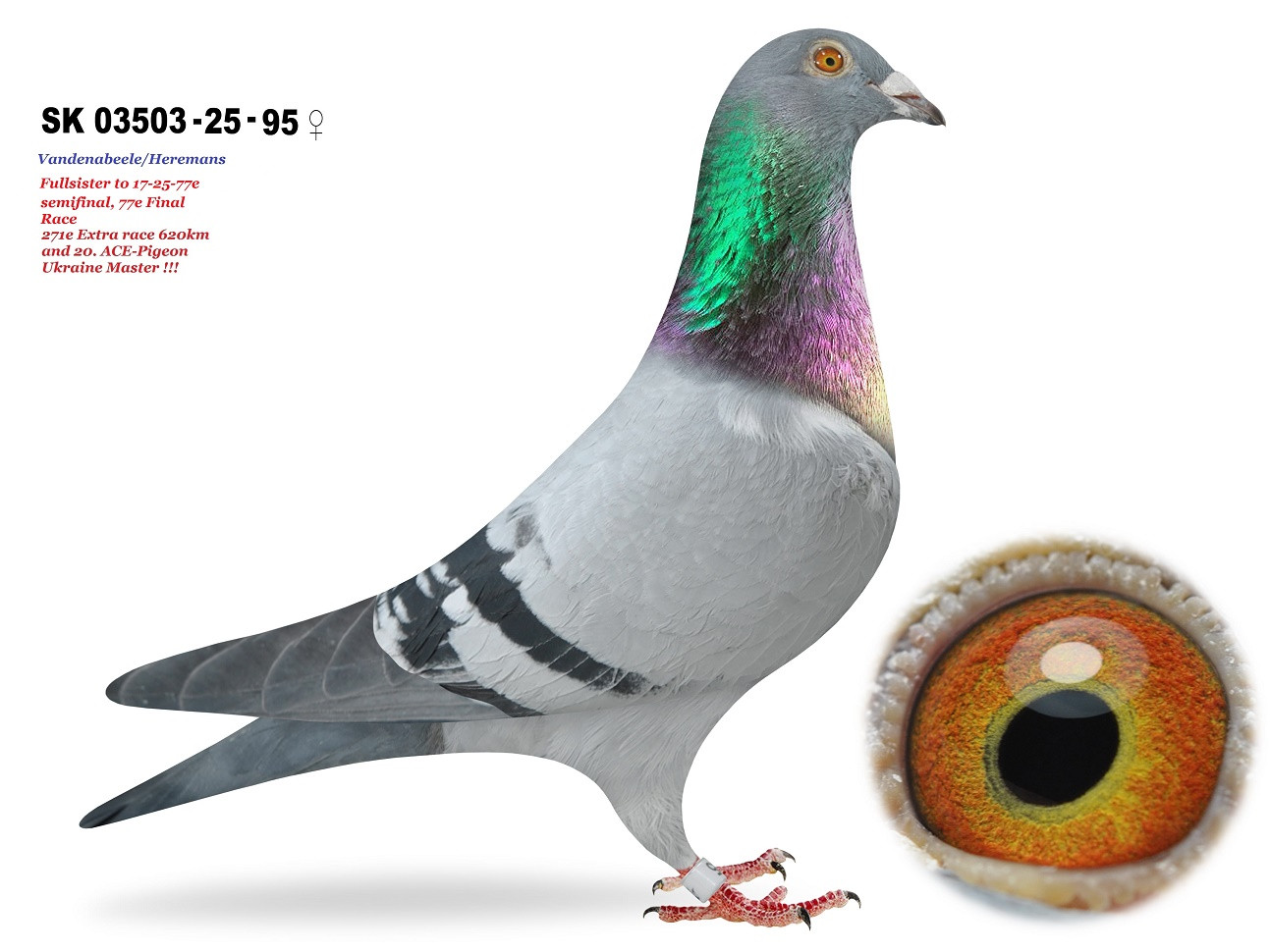 Popis: holub je synom "Ramirez"vnuk "Den Euro" orig. Eijerkamp, matkouje dcéra dvoch výnimočných pretekárov