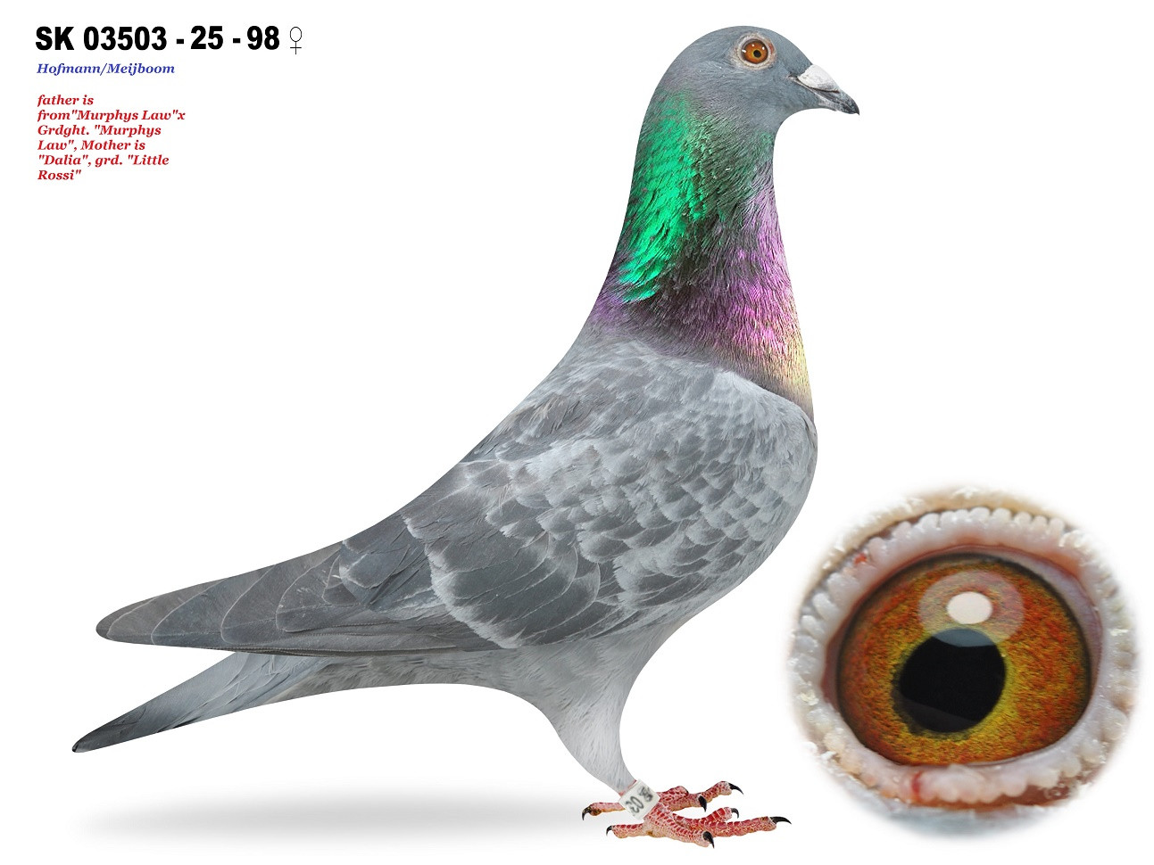 Popis: holub je synom "Ramirez"vnuk "Den Euro" orig. Eijerkamp, matkouje dcéra dvoch výnimočných pretekárov
