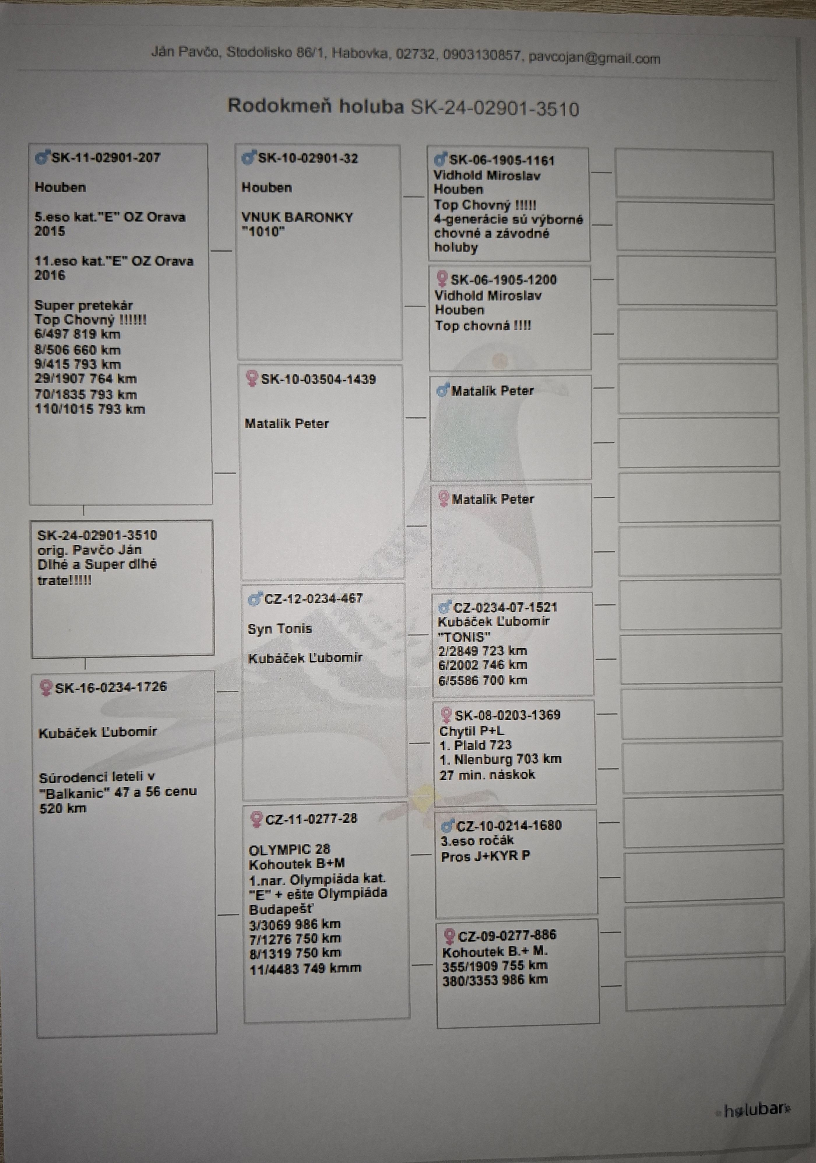 Rodokmeň matky holuba