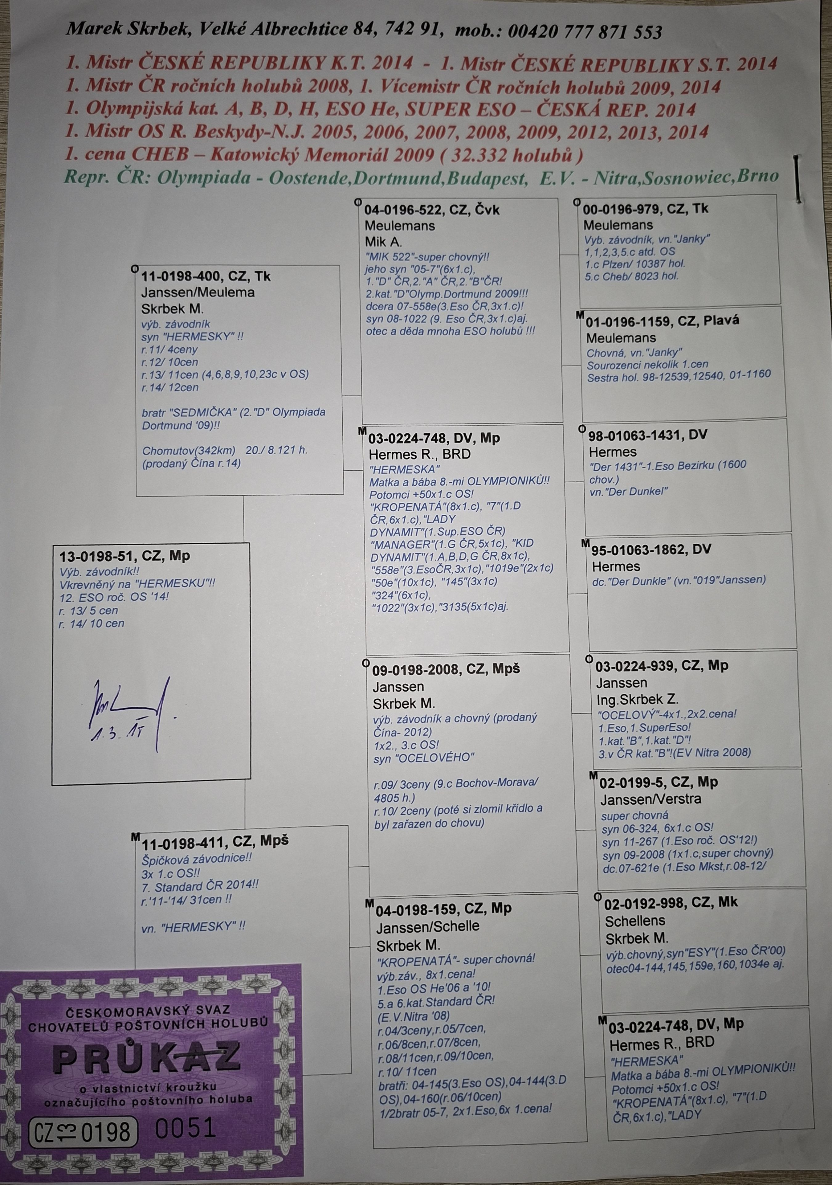 Popis: Otec -Houben -Dlhé trate x Matka je dcéra Olympic 28./1,miesto kat. E ČR