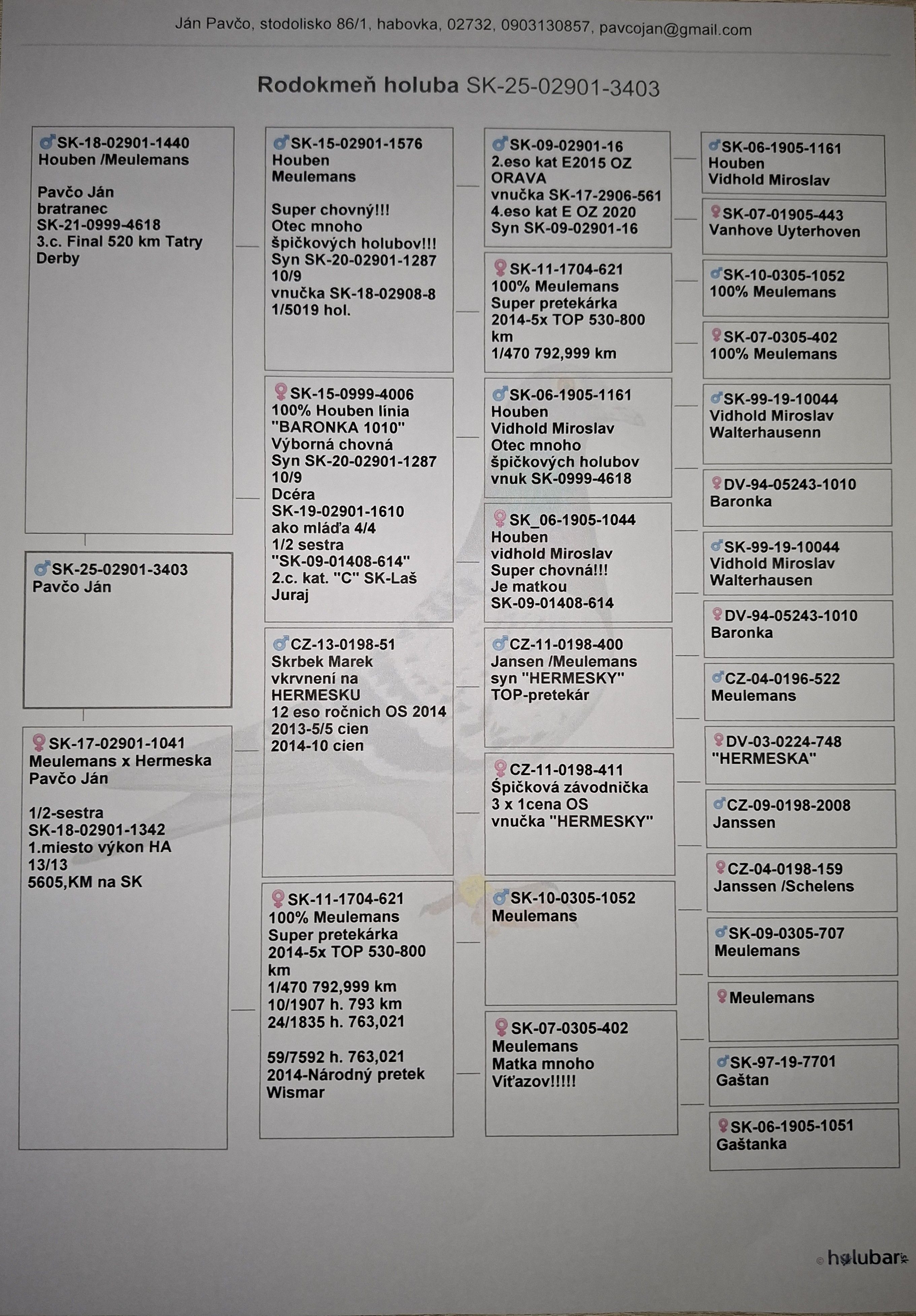 Pozdravujem všetkých chovateľov poštových holubov.Niekoľko násobný Generálny majster Oravy,krátke,stredné ,dlhé trate.Majster Regionu Orava+Liptov cca 220 chovateľov na koeficient .Z línie Baronka 1010 x 5555 vyhrala holubica národný pretek "HAMM 2023 , 885 KM" , ktorá nalietala cez 20 000 km v 20%. Veľa iných úspechov u iných chovateľov.Holuby boli preliečené , zaočkované Kolumba 2. ".Rozvoz holubov zabezbečím po hlavnej trase Žilina,Bratislava-Žilina,Košice po dohode s chovateľmi . Doprava za holuba 5 Eur !!!! Do ČR je možnosť poslať Zoo kurierom. Kontak tel.0903130857 Holuby sú vo výbornej kondícií pripravené na párenie!!!