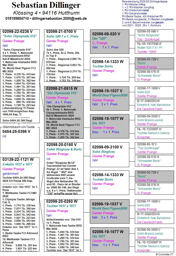 RV-Beste Jungtauben 1 , 2 , 3 , 4 , 5 , 6 , 7 , 9 usw.