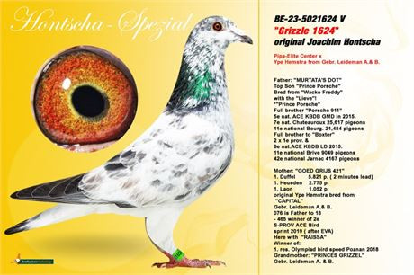 Holubica „GOED GRIJS 421“, orig. YPE HEMSTRA pochádza z párenia holuba „CAPITAL“ a holubice „PRINCES GRIZZEL“. Pochádza z tých najlepších holubov rodiny LEIDEMAN´S GEBr.. Holub „CAPITAL“ je synom holubice „RAISSA“, prvej náhradníčky Holandska na olympiádu v cat. A., či otcom holubice „465“, ktorá získala ocenenie 2. S-PROV ACE Bird sprint 2019. Holubica „PRINCES GRIZZEL“, je polosestra holubice „607“, ktorá dokázala zaletieť 2. / 13 967 hol., alebo polosestra „787“, ktorá dokázala zaletieť 3. / 16 181 hol., 6. / 13 967 hol., atď.