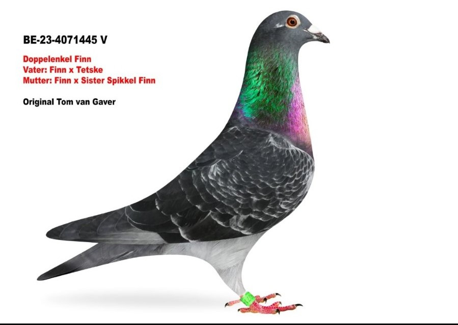 Holubica „Inteelt Finn“ pochádza z párenia holuba „Zoon Ricky“ a holubice „Miss Finn“.