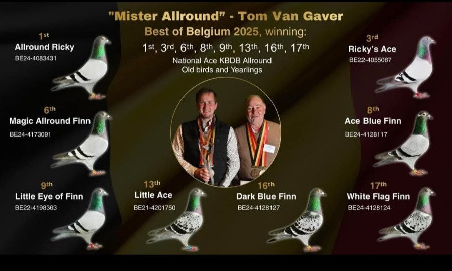 Holub „Zoon Ricky“ pochádza z párenia TOP holuba „RICKY“ a holubice „Moed. Finnman“. Zároveň holub „Zoon Ricky“ je polobrat holuba FINNMAN, ktorý je vnukom holuba FINN a dokázal získať tieto tituly: