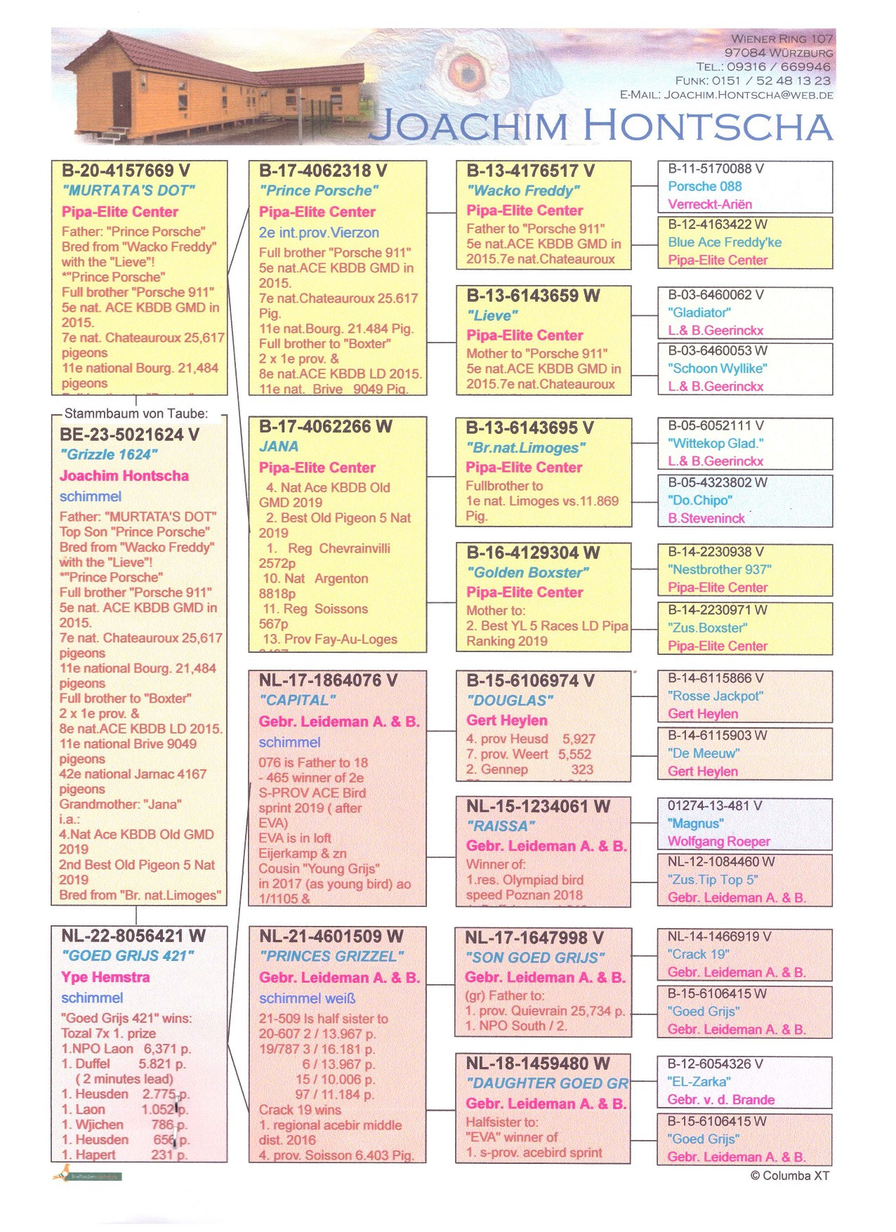 V holubovi „YPE“ spojenie úspešnej rodiny PORSCHE 911 alebo WACKO FREDDY x LIEVE na strane otca s rodinou LEIDEMAN´S GEBr., či GOED GRIJS FAMILY na strane matky - TOP x TOP.