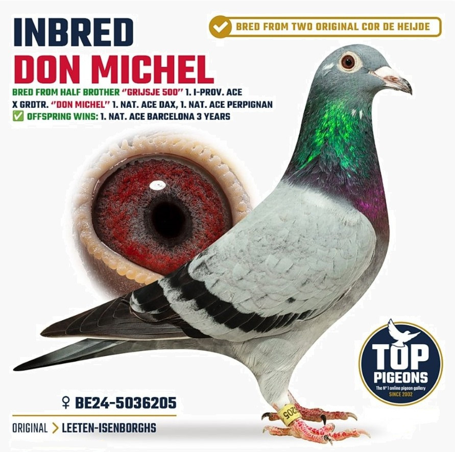 Holubica „Inbred Don Michel“ je obojstranná vnučka holuba DON MICHEL!