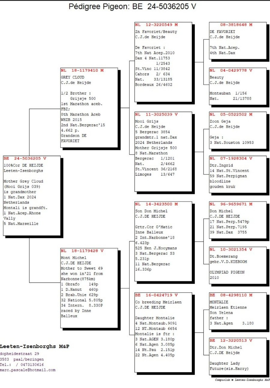 Bližšie informácie v priložených prílohách a rodokmeňoch. Podrobné info o referenciách holubov COR DE HEIJDE sa dočítate na tomto linku ( zdroj: PIPA.BE rok 2024 v anglickom jazyku):
