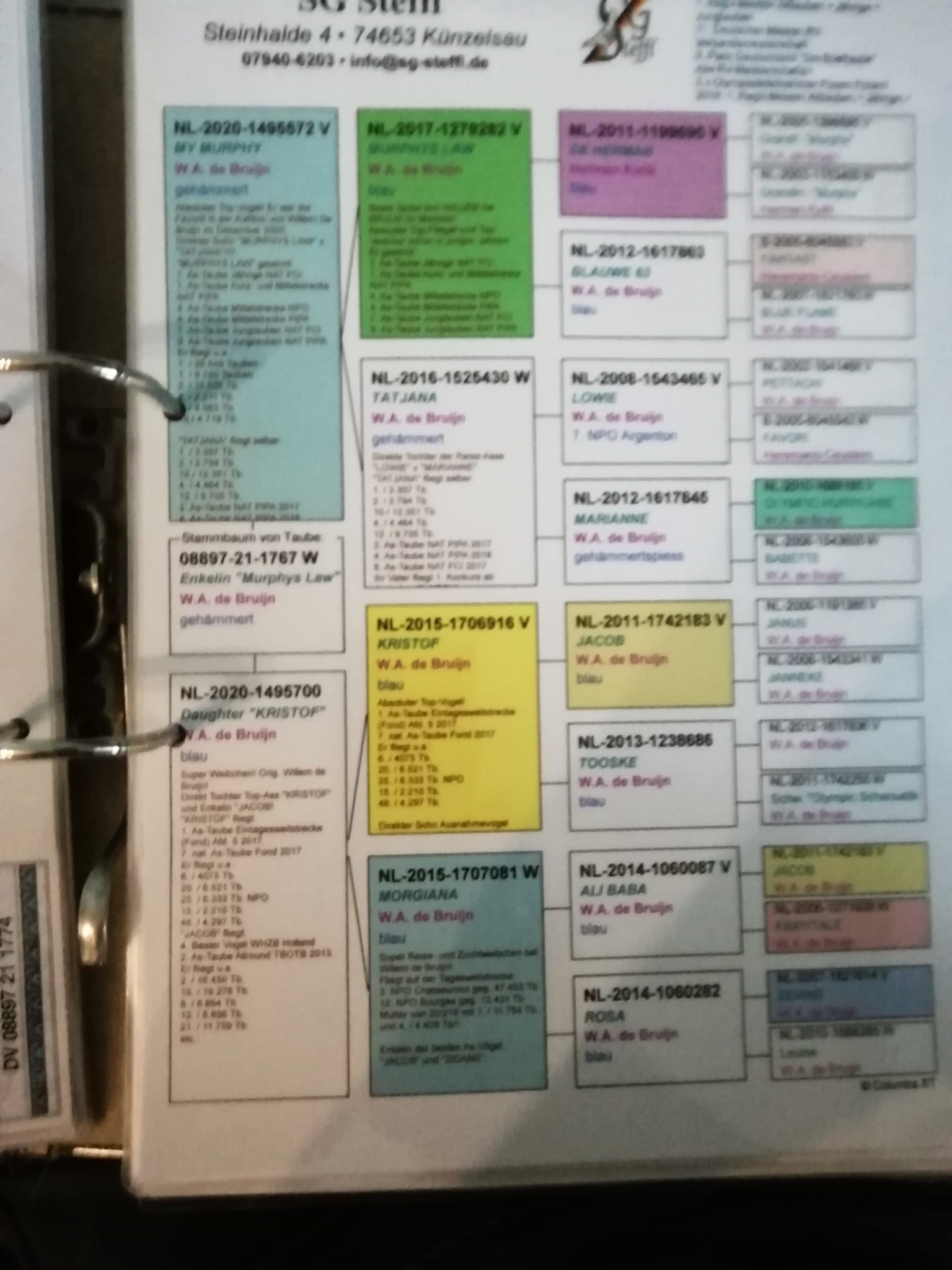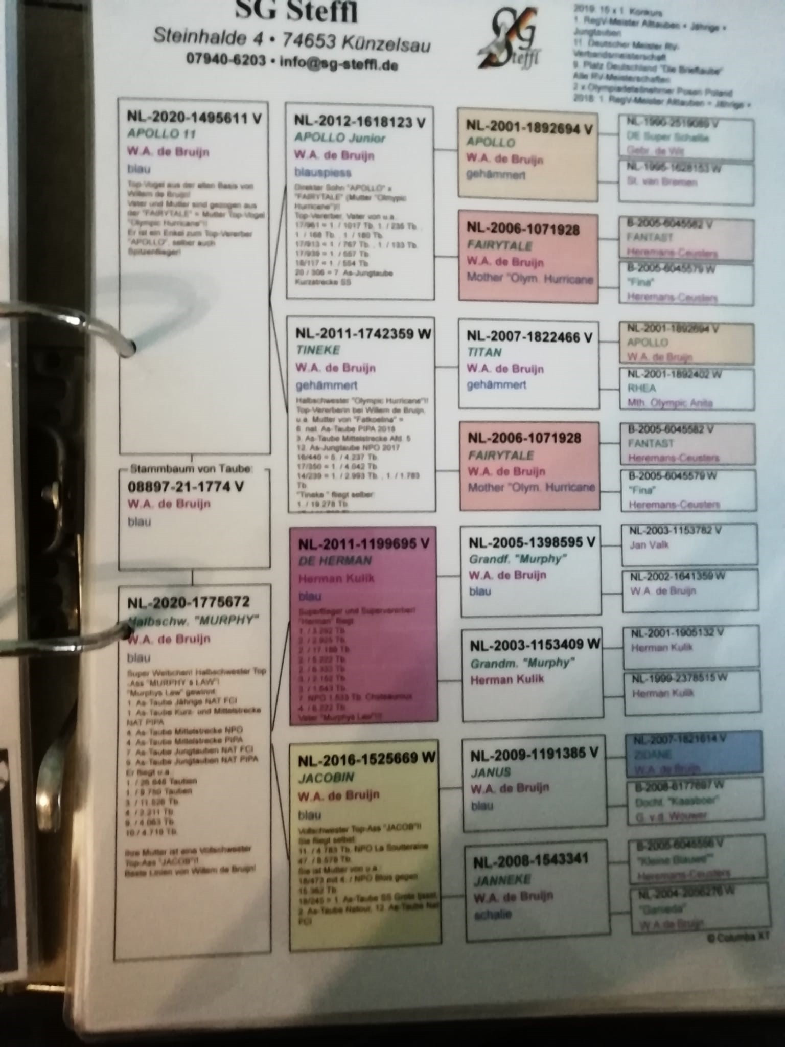 Holub „679“ pochádza z párenia holubov „1774“ a „1767“. Obaja rodičia z originálov SG STEFFL, línia  holubov W. A. de Bruijn.