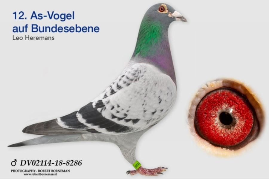 Popis: OTEC: Holub „1364“, línia OLYMPIC RICO, GOED GRIJS, El-ZARKA, orig. Heinz Hilleke, MATKA: TOP holubica 100 % PORSCHE 911! Vnuk Olympic RICA strieborný olympionik Cat. A v Dortmunde 2026 ( TEAM KALLEN )!!!