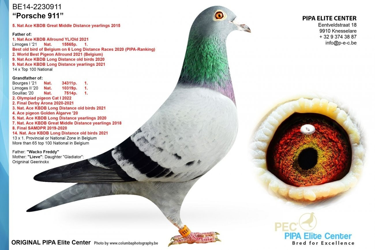 MATKA = VNUČKA PORSCHE 911, zároveň aj VNUČKA SISTER PORSCHE 911, čiže sestra PORSCHE 911, ale nie hocijaká!!!, ale ktorá je matkou 1. Olympijského holuba kategórie C 2022!, ďalej je aj VNUČKA MACAN 112, ktorý je brat PORSCHE 911, 8. najlepší ročiak na dlhé trate z 3 pretekov PIPA hodnotenie 2017! a aj VNUČKA 820-tky, ktorá je super chovná holubica a produkt TOP holubov LUC a JUST WAIT od L.B. & J. Geerinckx.