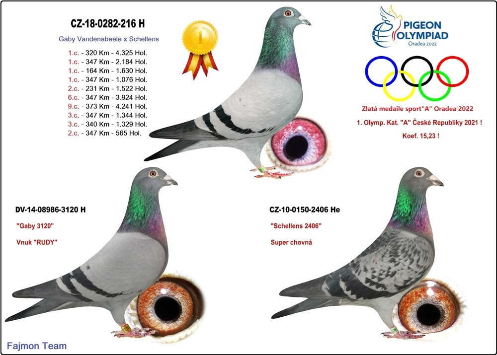 Sumárne referencie našej „Zlatej páry“ sú výborné, či to už je veľa umiestnení v TOP 10 OZ alebo aj v regióne, či v pretekoch alebo súťaži ESO (vrátena 1. ESO mláďa ČR 2022) alebo je to výborný odchov v testovacích staniciach. Holuby tejto línie sú úspešné od 100 do 900 km, čo sa potvrdilo aj v MARATON klube, kde vnuk /ročný!/ dokázal vyhrať a byť ako jediný doma prvý deň z 813 km. A tie 2 výborné úspechy v TS: 2. cena semifinále Vác 2019, ale aj 3. ESO mláďa v Európskych majstrovstvách sveta GRAND PRIX MIRA 2020 (juniori+seniori)!