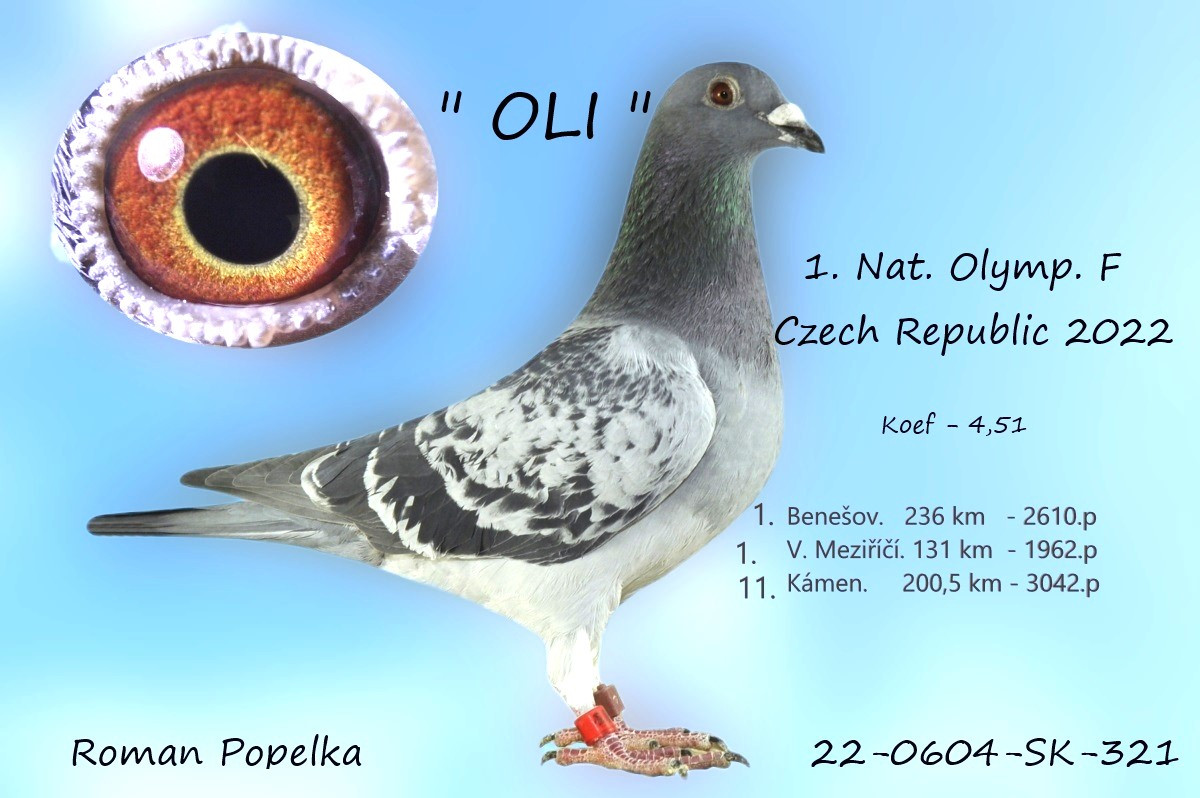 Foto 1. ESO mláďa ČR 2022 holub OLI - vnuk Zlatej Páry