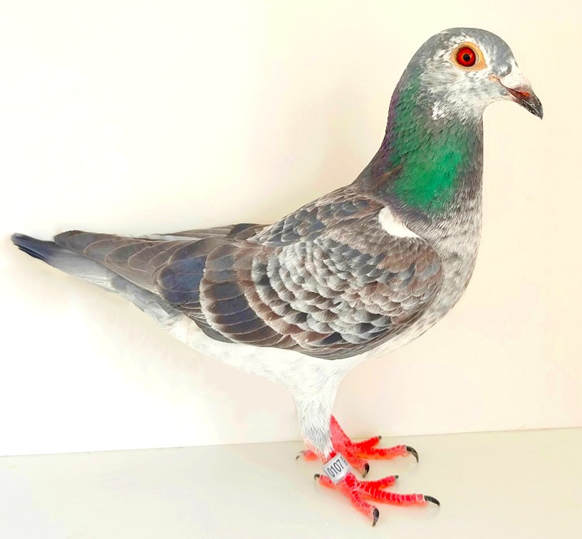 Popis: Vkrvnený holub čistej línie BEST KITTEL, TOP! OTEC: Holub „150“, totálne vkrvnený BEST KITTEL, obojstranný vnuk CHRISTIANA, orig. Klaus Friedrich, MATKA: Holubica „1041“, vnučka holuba BEST KITTEL & JUNIOR, orig. A. u W. DRAPA.