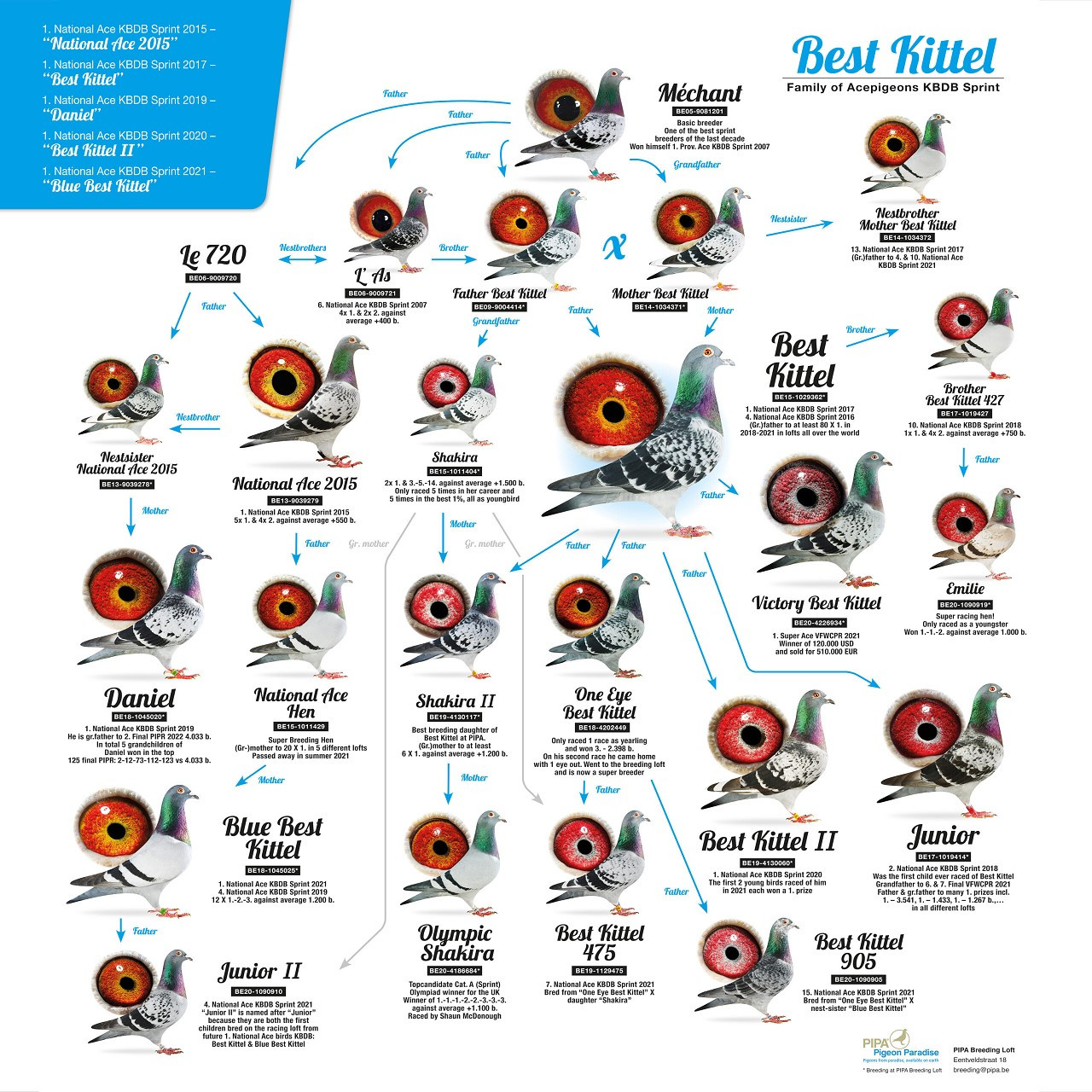 Dole nižšie si môžete v anglickom jazyku prečítať v skratke zopár referencii línie BEST KITTEL, zdroj portál PIPA. Iba vyzdvihneme, že od roku 2018 minimálne 200 x 1.cena s holubmi línie BEST KITTEL!!!