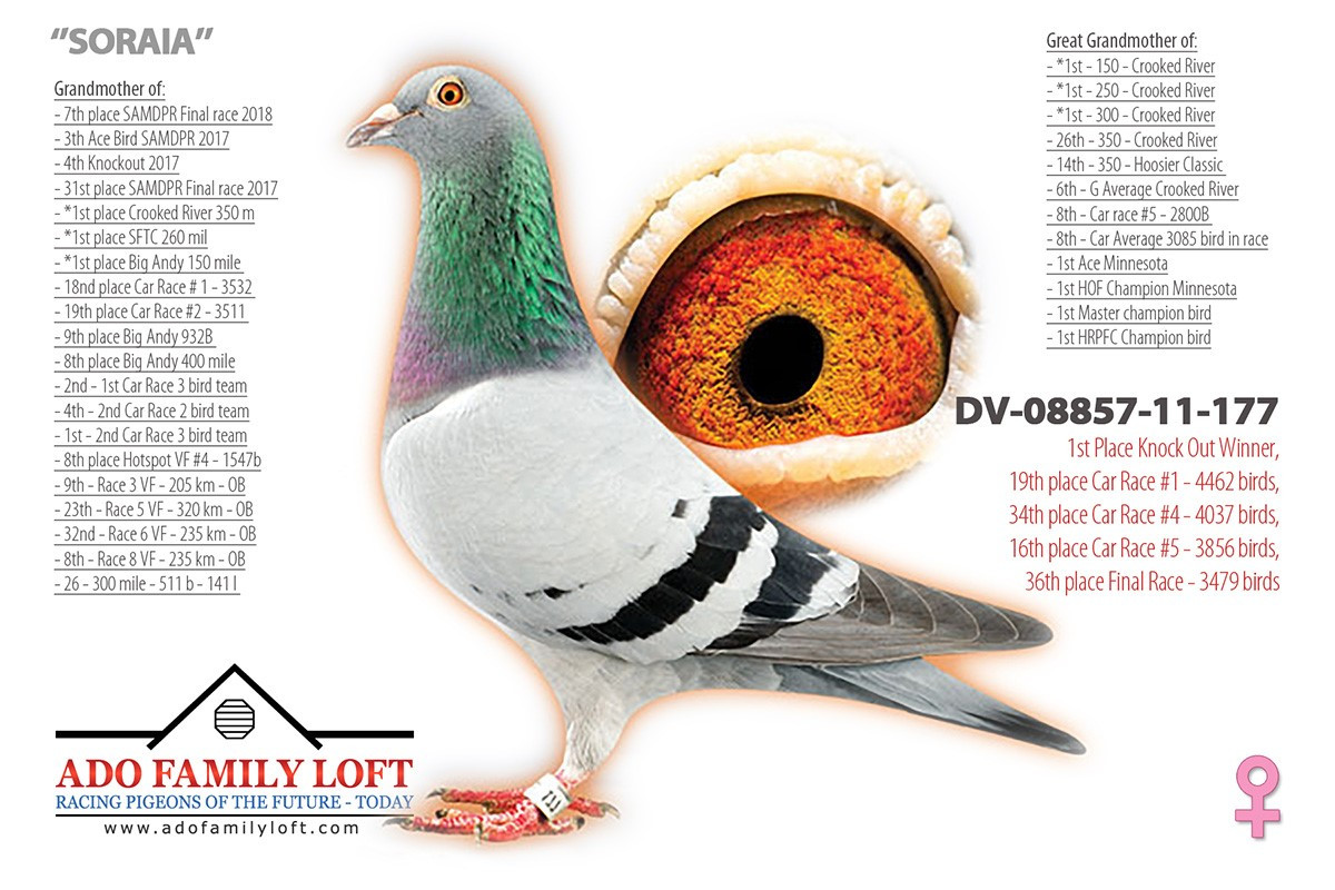 Na strane matky máme dcéru párenia „FINN“ x „FINN´S DREAM“. Holub „FINN“ bol základný chovný holub (krádež 2024) u TOM van GAVERa. Holubica „FINN´S DREAM“ bola 4. na olympiáde v kategórii I v roku 2021. Je dcérou brata holuba „FINN“. Odchovy kombinácie „FINN“ x „FINN´S DREAM“ dosiahli obrovské množstvo úspechov v TS, či pretekoch.