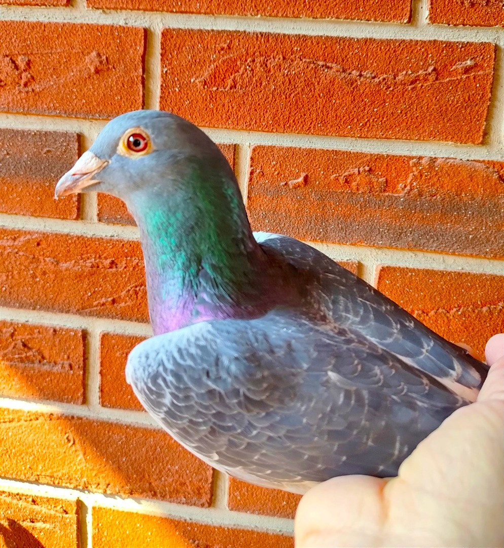 Foto holuba 1296 zo dňa 18.2.,  foto oka v ruke zo dňa 3.3.. Ide o fakt nádherného tmavého špicého holuba, ktorý žiaľ nespolupracuje pri fotení. V prípade vydraženia určite potvrdí úspešný dražiteľ, že ide o veľmi pekného a šikovného holuba aj v ruke. Vrele odporúčame.