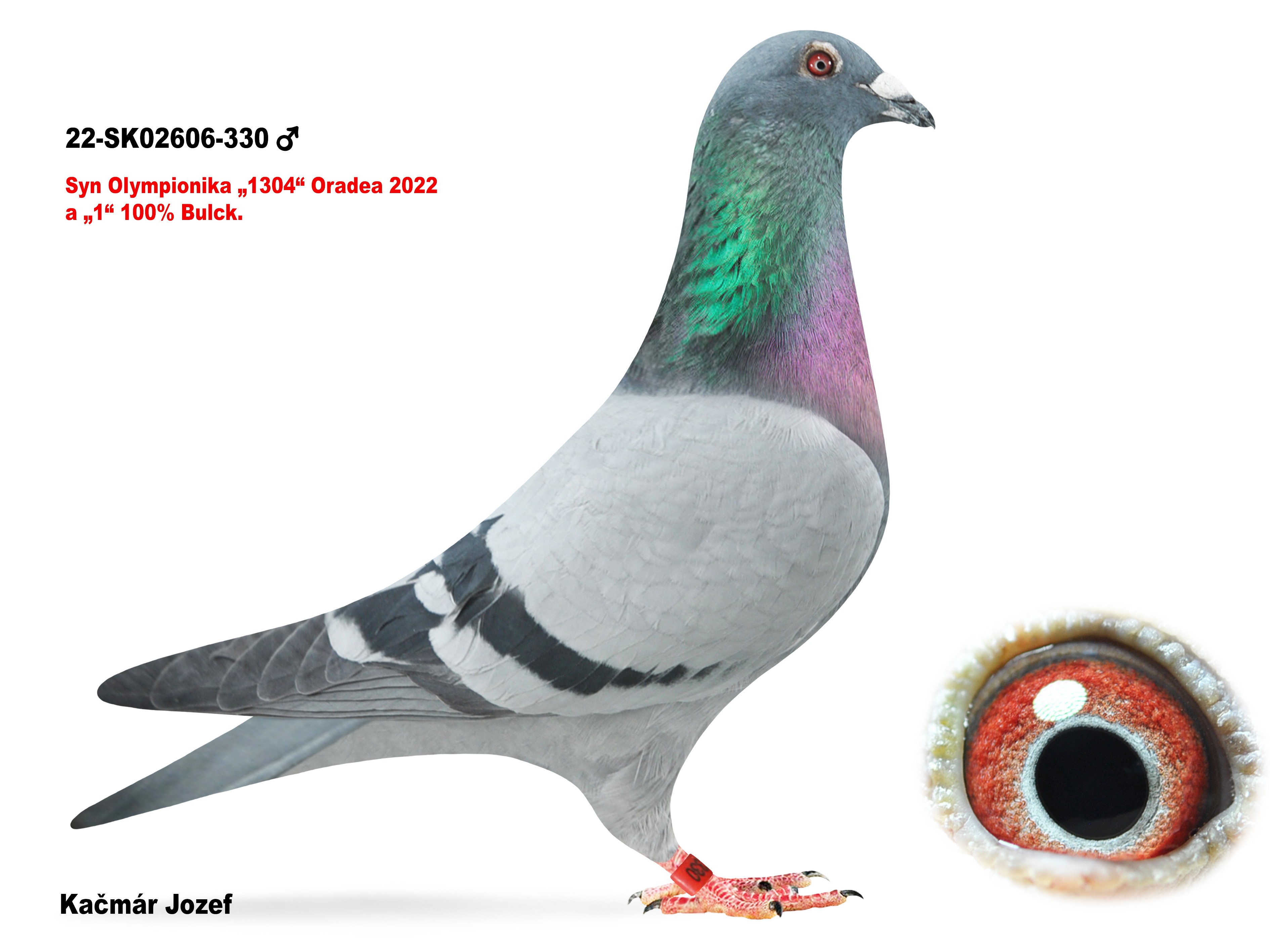 Modrý výb.závodník Jozef Kačmár 2018-12c. 1ESO v OZ 2ESO v R 11 ESO na SK. 2019-13c.Národný víťaz v kat. H.Koef. 13,643 3.m v kat.A na SK. 4.m v kat.B na SK. 2.m v kat.D na SK. 3.c na SEV -BRNO Za 2 roky 14X v 1% 4 x 1cena 2 x 2cena 2 x 3cena 1 x 4cena 2 x 5cena 2020-10c.2.m v kat.D na Slovensku. OLYMPIONIK "ORADEA" 2022- 10.miesto Modrý 2023 - zranené krídlo 2024-zaradený do chovu. Syn Olympionika"1304" Jozef Kačmár Polobrat"505" 3x 1.cena. | Výb. závodník Mp Peter Mikunda Jeho matka je 100% Grondelaerska Schmidt Gottfried Je otec Olymp."1304" |