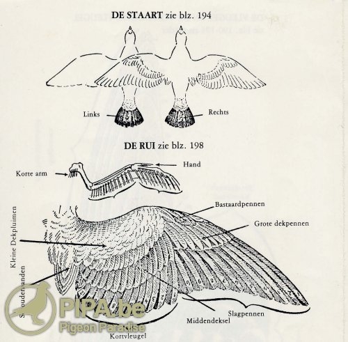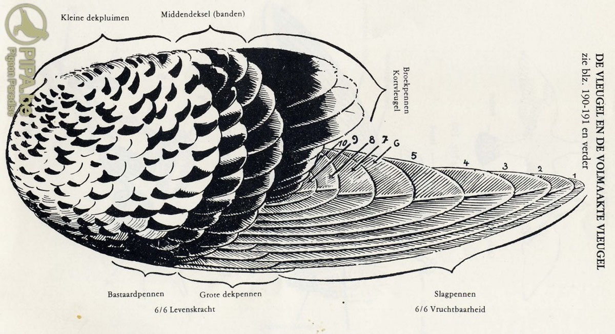Úvod · Články o poštových holuboch · Ostatné · Preperovanie pre úspešné pretekyPreperovanie pre úspešné pretekyAk chcete, aby sa holubom počas celej sezóny darilo na pretekoch, kvalitné preperenie je kľúčovým prvkom nielen pre ich úspechy, ale aj pre celkovú vitalitu a plodnosť. Perie, ktoré by sa malo meniť každý rok zahŕňa operenie hlavy a krku, krycie perie, pokrytie krídiel, operenie nôh, perie čiernych pásikov na krídlach, 10 primárnych letiek, 12 sekundárnych letiek a perie pokrývajúce kostrč a chvost. Drobné perie na tele holuba sa mení prakticky po celý rok, záleží to na zdravotnom stave a kondícii daného holuba a tiež jeho výžive. Proces jeho výmeny sa považuje za kompletný po dvoch rokoch. Znaky kvalitného prepereniaHlava a krk Perie na hlave, okolo uší a na krku by po namočení nemalo pripomínať výzor vlasov, perie by malo pôsobiť načechrane - páperovito. Výzor peria hlavy a krku pripomínajúci vlasy hovorí o slabosti hlavy holuba, pravdepodobne spôsobenej prechladnutím. Krídlo ![]() Malé krycie perie Na nových krycích pierkach krídiel by nemali byť žiadne uzlíky, výrastky alebo zúžené časti na brkách. To platí aj pre pierka čiernych pásikov a primárne letky, pri ktorých je navyše dôležitá aj správna dĺžka. Primárne letky Na perách ani brkách primárnych letiek by sa nemali vyskytovať žiadne zúženiny, trhliny, či uzlíky. Nemali by byť "zubaté". To znamená, že pri rozprestrení krídla by koncové body primárnych letiek mali tvoriť líniu podobnú čepeli noža bez zúbkov. Každá primárna letka by mala mať plnú dĺžku a na konci prvého roka by mal počet nových primárnych letiek zodpovedať mesiacu vyliahnutia holuba. Ak sa holub vyliahol v piatom, šiestom, či siedmom mesiaci, mal by v tom roku vymeniť primárne letky aspoň po číslo svojho mesiaca. Len vtedy sa dá hovoriť o dobrom preperení. Ak holub nevyhodí primárne letky s číslom 5, 6, 7, 8 či 9 (podľa mesiaca vyliahnutia), alebo ak sa skracuje dĺžka medzi koncami nových primárnych letiek, holub v nasledujúcej sezóne nedokáže podať svoj maximálny výkon. Stáva sa to obvykle holubom, o ktoré nebolo počas pretekovej sezóny dobre postarané, alebo ak sa chovateľovi nepodarilo udržať dobrý zdravotný stav. Poznámka č.1: Niekedy sa stáva, že holubom narastie prvých 9 primárnych letiek s plnou dĺžkou a desiata (číslo 1 zvonku) je o 2 mm kratšia, alebo rovnaká ako predposledná. Ak sa tak stane, mali by ste skontrolovať, či je predposledná letka stále na svojej maximálnej dĺžke (1,5 - 2 cm od konca chvosta) Poznámka č.2: častejšia býva opačná situácia. V takom prípade je primárna letka č.1 (vonkajšia) dlhšia ako predposledná (č.2), alebo minimálne rovnakej dĺžky. V takom prípade je pravdepodobné, že ostatné primárne letky vyrástli o 1 - 2 cm kratšie, ako mali. Stáva sa to holubom, ktoré žijú v nevhodných podmienkach a výsledkom je, že sa nehodia na preteky ani chov. Čo ak holub nestihne vymeniť všetky primárne letky ani do druhého jarného hniezdenia? Ak holub nevymení všetky primárne letky do druhého hniezdenia, vymeňte vajíčka za umelé. Ak ste to nestihli alebo ste si všimli príliš neskoro, vezmite od holuba mláďatá vo veku 8 - 10 dní. Holub by mal byť umiestnený do izolácie a mali by ste sledovať jeho zdravotný stav. Ak holub trpí nejakou chorobou, tá sa počas odchovu mláďat zvykne prejaviť zápalom v hrdle. Ak uvidíte v hrdle holuba hlien, zahájte kroky pre identifikáciu a liečbu ochorenia. Nikdy holubom nevyťahujte primárne letky Ak holub nestihne načas vymeniť všetky primárne letky, nikdy by ste ho nemali nútiť k preperovaniu vyťahovaním letiek. Ak sa preperovanie zastaví, zjavne je to príznakom nejakého nedostatku, alebo choroby ovplyvňujúcej obeh krvi, ktorú treba identifikovať a ošetriť. Výsledkom je nedostatok prostriedkov pre obnovenie peria. Ak sa budete držať tejto rady, dopracujete sa k výsledkom. Poznámka: ak si holub zlomí alebo poškodí jednu, či viac letiek pri nehode, môžete ich vytiahnuť za predpokladu, že bude o holuba dobre postarané. Takýto zákrok však odporúčame iba v mesiacoch marec a apríl. Sekundárne letky Zadná časť krídla pozostáva z dvanástich letiek, ktoré sa čiastočne obnovujú každý rok. Sekundárne letky by sa mali kompletne obnoviť do tretieho roka života za predpokladu, že je holub zdravý. Holuby v dobrom zdravotnom stave to obvykle stihnú už do dvoch rokov. Pre zdravého mladého holuba vyliahnutého pred mesiacom jún by preperovanie sekundárnych letiek malo prebiehať približne takto: - 1. rok: 8 letiek, 5 zo strany tela (12, 11, 10, 9 a 8) a tri zo strany primárnych letiek (1, 2 a 3) - 2. rok: 1 letka zo strany tela, 1 letka zo strany krídla (7 a 4) - 3. rok: po jednej z každej strany (6 a 5) Prvý rok je veľmi dôležitý. Počas prvých troch rokov musí byť tých 8 nových letiek plne funkčných. Päť z nich (zo strany tela) slúžia ako ochrana tela - chrbta a kostrče. Ak sa mladému holubovi podarí v prvom roku vymeniť 8 sekundárnych letiek (5 + 3), hovorí to o jeho dobrom zdravotnom stave a dobrom priebehu preperovania. Zadné krídlo dosiahne plnú dĺžku, ak majú konce sekundárnych letiek pri zatvorenom krídle vzdialenosť približne 1 - 1,5 cm od druhého pásika. Mali by mať rovnakú farbu, ako telo holuba bez rozdielu vo farbách holubov. ![]() Krídlo dospelého holubaVýmena primárnych letiek začína desiatou letkou (prvou z vnútornej strany krídla, najbližšie k sekundárnym letkám). Za približne 4 týždne by mala vypadnúť deviata letka. Keď deviata letka dorastie približne do polovice sĺžky, preperovanie pokračuje ôsmou letkou a tak to platí aj pre ďalšie. Výmena primárnych letiek úzko súvisí s celkovým zdravotným stavom, kondíciou holuba a s