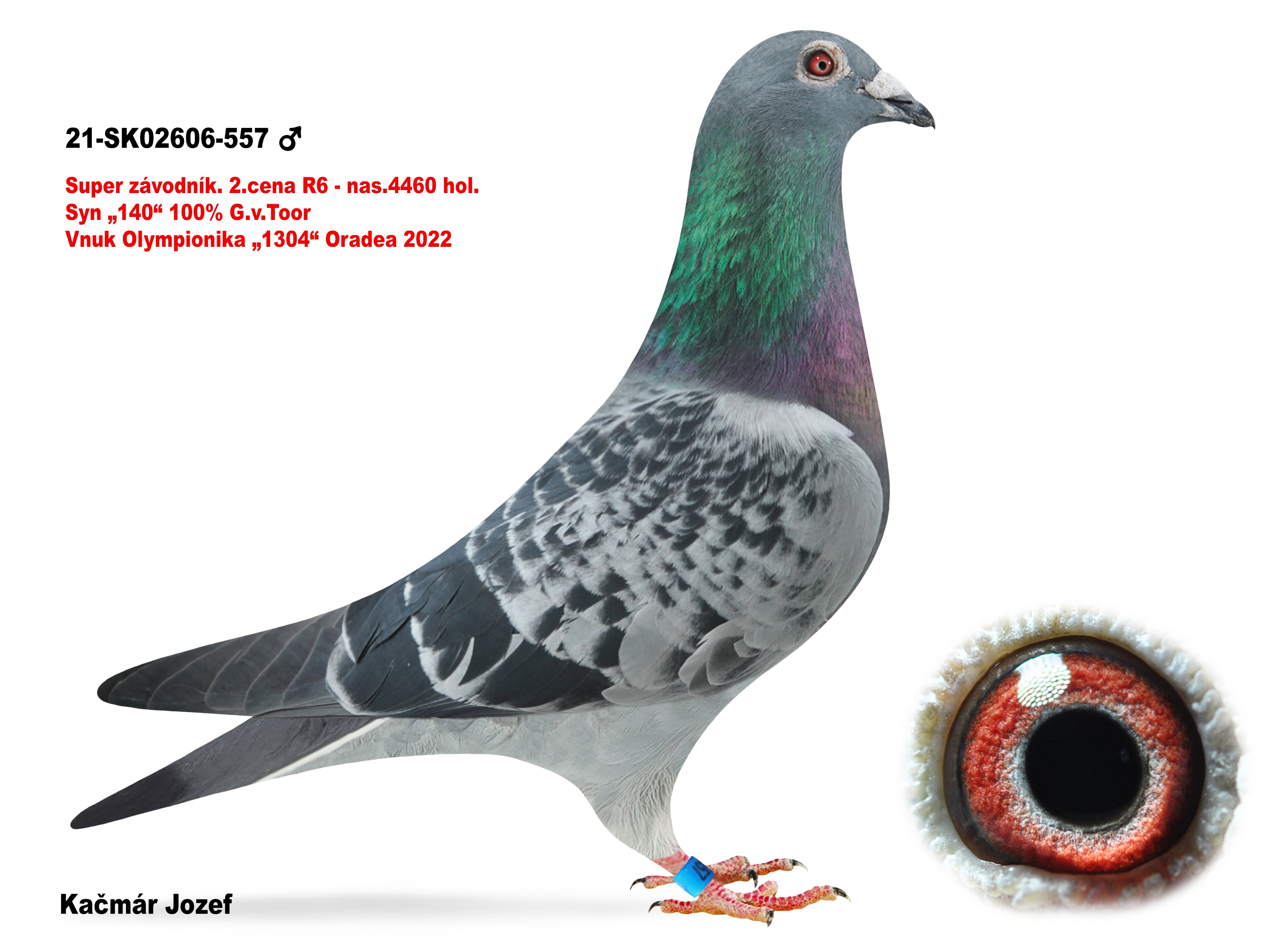 Kapr. J.Kačmár Gebr. Van.TOOR x dcéra Olympionika"1304" Ako ročiak 2c. v Regióne 4460 hol. poranené krídlo | Kapr.Gebr.Van TOOR Sestra Olympic TAMARA Olympionička-Budapešť 1.c-7682 2.c-5790 18.c-5438 Modrý výb.závodník Jozef Kačmár 2019-13c.Nár. víťaz 3.c na SEV v BRNE OLYMPIONIK "ORADEA" 2022 - 10.miesto Za 2 roky 14X v 1% 4 x 1cena Kapr. Jozef Kačmár 2017-2.c 2018-2.c 2019-9.c dcéra-"115" výb.závodník-14x14 V pozadí je super chovná Rakušanka "1073" | Modrý výb.zav. 14/14 Jozef Kačmár. Za život 50 cien v 7%17067 km. Jeho dedo "813"16x15 |
