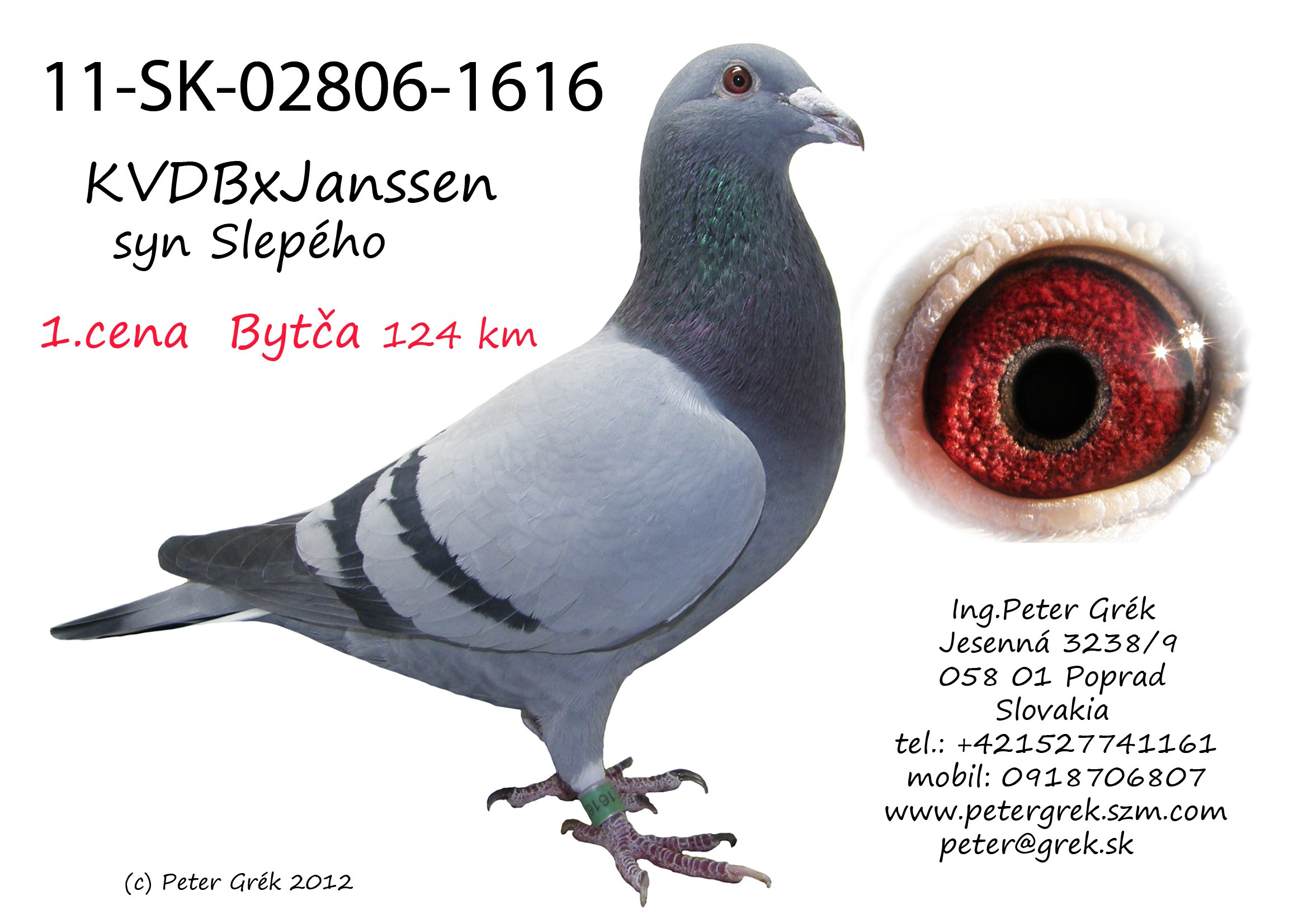 Úvod · Veľká cena holubar.sk 2013 · Súťažiace holuby 2013 · "Očko" (SK-2011-02804-1616) - Profil holuba